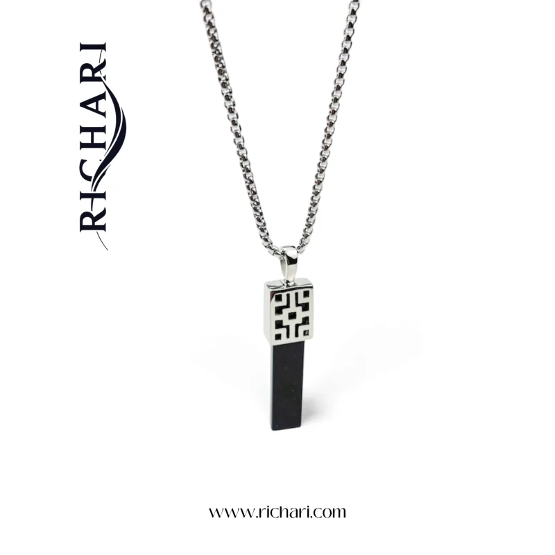 The Geometric Bar Pendant Necklace is designed for those who appreciate minimal style with a touch of modern elegance. The pendant features a sleek black bar paired with a polished metallic top engraved with a bold geometric pattern. This unique contrast creates a stylish and eye-catching look suitable for any outfit. Crafted from high-quality stainless steel, it is rust-free, fade-resistant, and perfect for everyday wear. Whether you’re dressing casual or modern streetwear, this necklace adds a sharp and sophisticated edge.