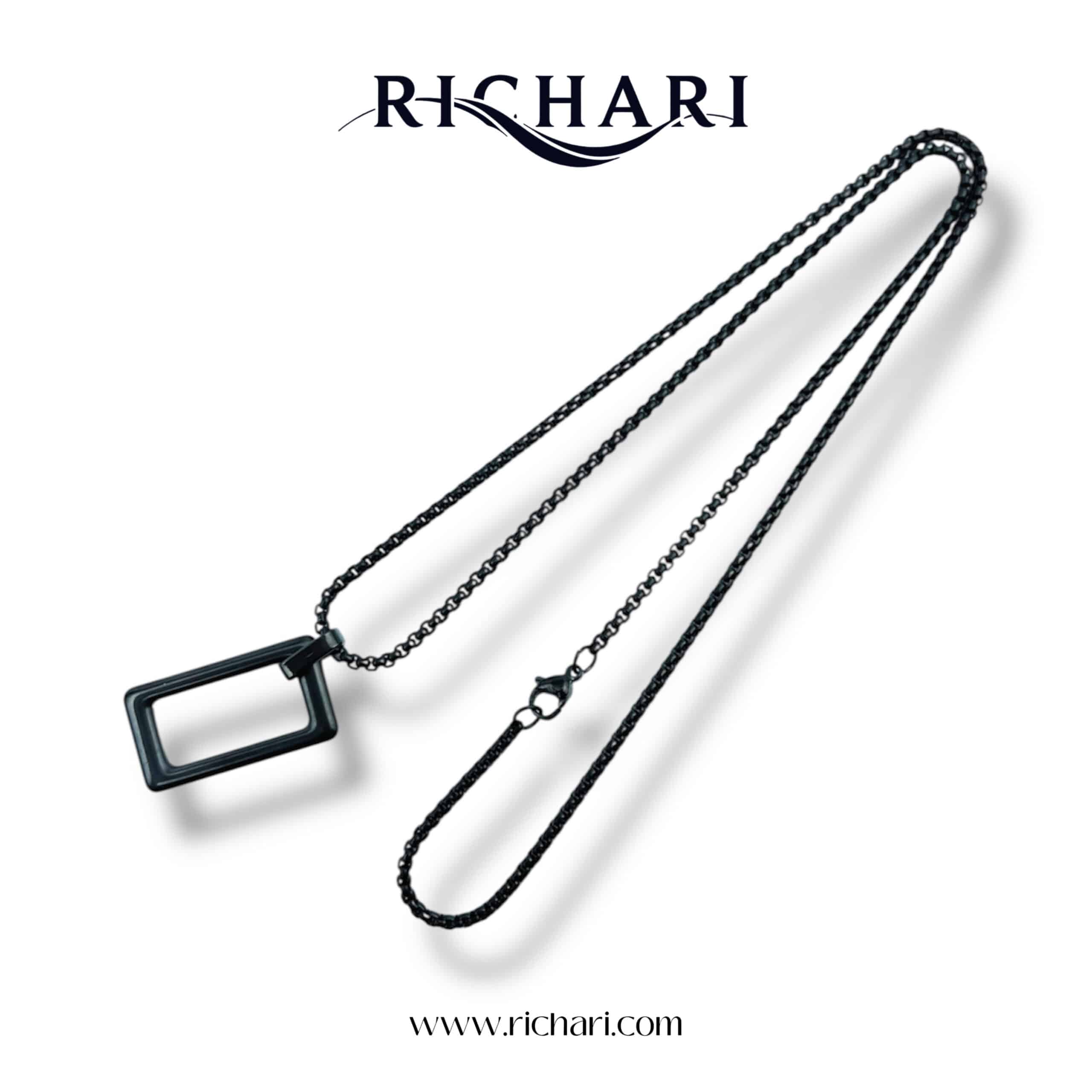 The Hollow Rectangle Pendant and chainby Richari is a celebration of modern simplicity and strength. Designed with clean lines and an open rectangular frame, this piece represents clarity, structure, and endless possibilities. The pendant is made from high-grade stainless steel, offering durability and a polished, mirror-like finish that catches the light beautifully.