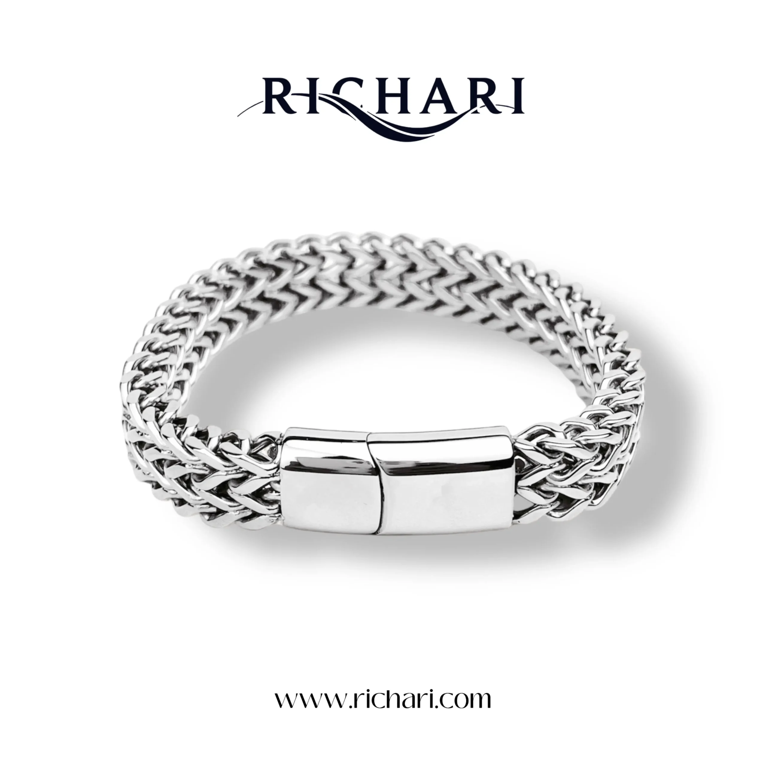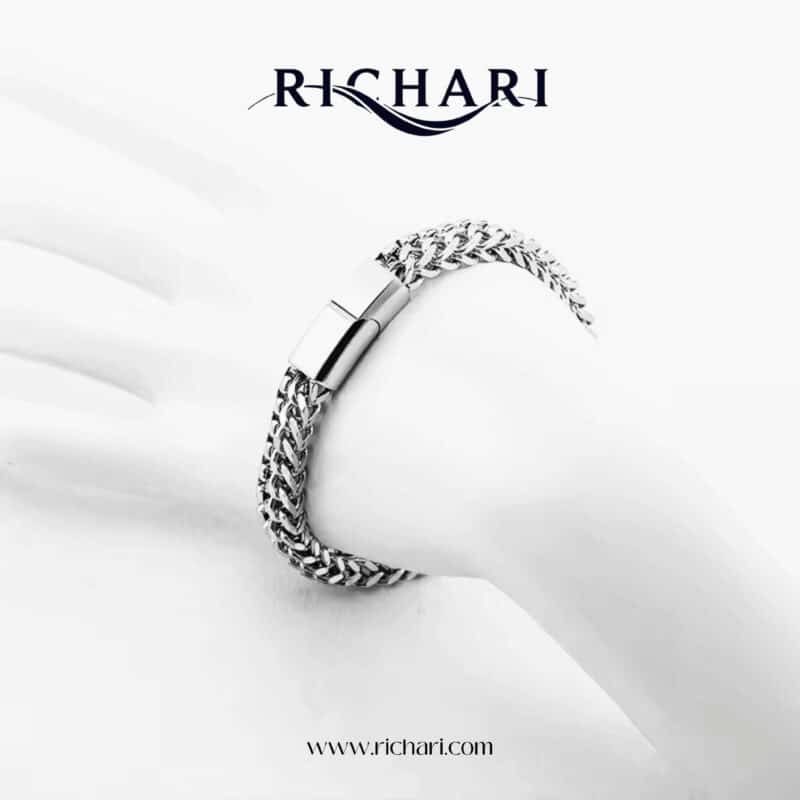 “Step into timeless elegance with the Richari Premium Braided Chain Bracelet. Designed with precision and crafted from high-quality stainless steel, this bracelet is the ultimate fusion of strength and sophistication. A versatile accessory that elevates your everyday look while ensuring durability for years to come.”